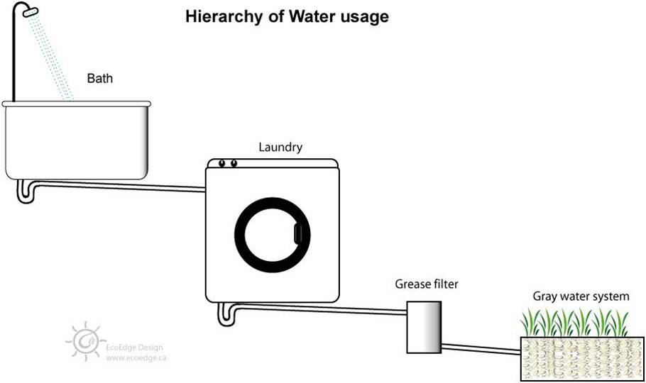 We can look at this as assigning each element in the system multiple duties. This builds redundancy into the system, making it more resilient. For nonliving systems, it conserves resources to assign multiple duties to each element. For example, the more duties we give water, the more effectively we can use water. (Don’t include grease filters in your greywater systems.)